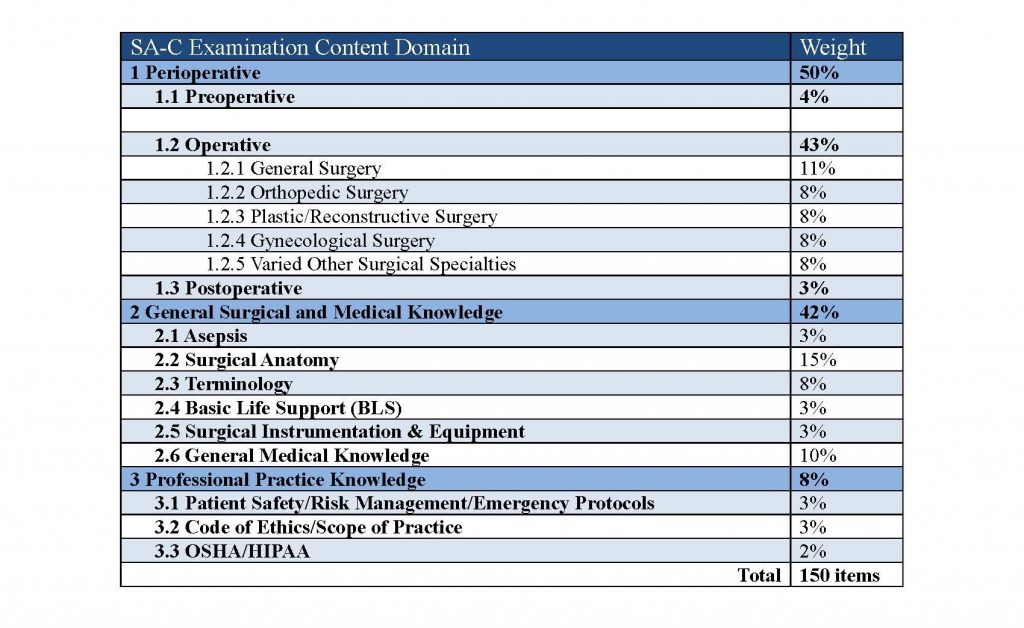 The SA-C examination consists of 150 questions. Candidates will have three (3) hours to complete the computer-based examination. Examination questions are single-select, multiple-choice with four options. The exam covers the topic areas detailed in the content outline. All exam content is developed based on practice in the United States. The SA-C exam is offered only in English.